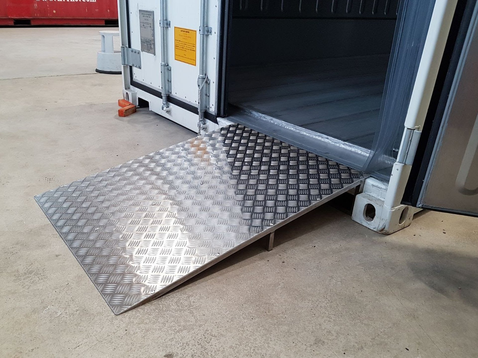 Do you need a ramp for moving trolleys or a pallet jack in and out of a shipping container, storage container or a reefer container? We provide custom-made ramps for containers in the desired width and length.
